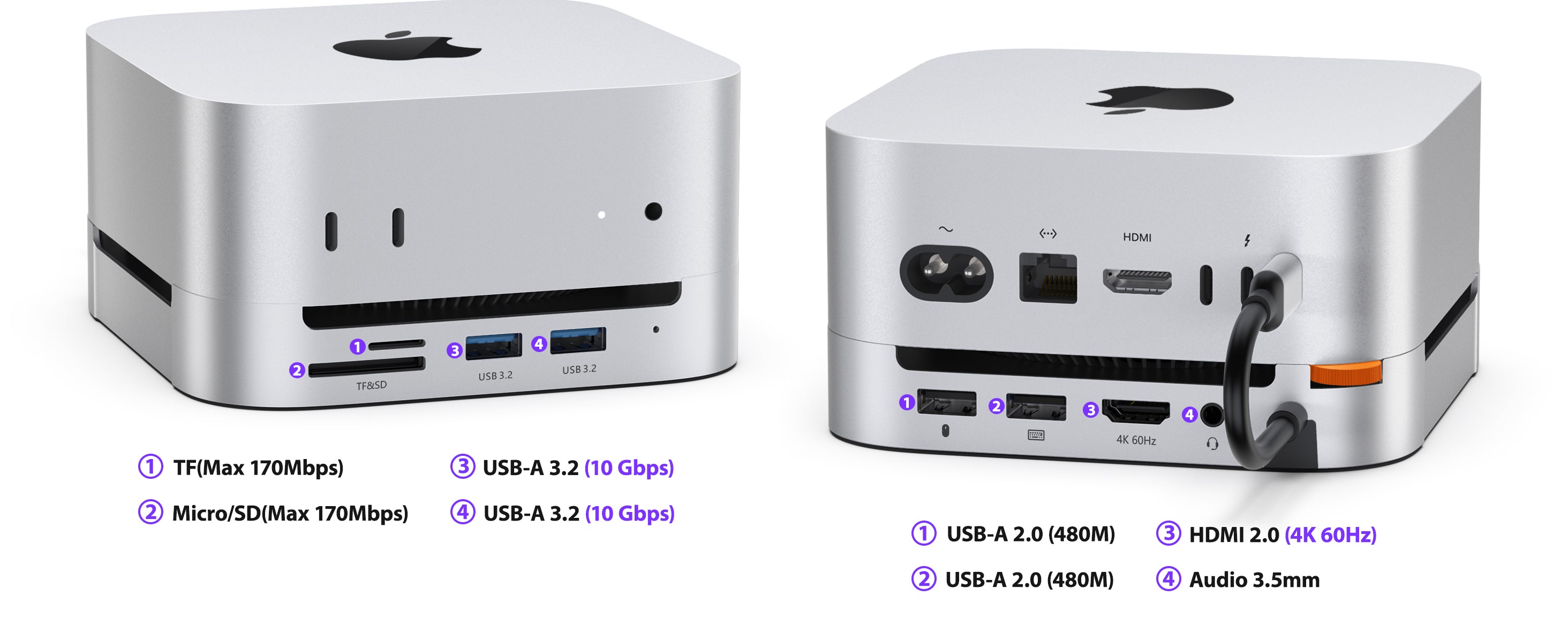Meet the Mac Mini M4 Stand & Hub — the ultimate evolution of our most popular hub. Engineered to perfectly complement the 2024 Mac Mini, this sleek, space-saving hub expands your connectivity while keeping your workspace organized. Enjoy effortless access to front-facing ports and seamless support for legacy devices via USB-A connections, all in one integrated design.
